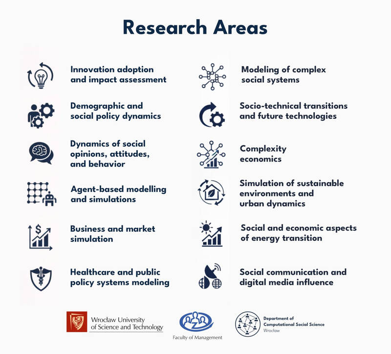 Miło nam przedstawić Państwu nowo utworzoną Katedrę Obliczeniowych Nauk Społecznych (K99W08ND12) na Wydziale Zarządzania Politechnika Wrocławska. Łącząc innowacje, dane, symulacje i różnorodną wiedzę specjalistyczną, nasz interdyscyplinarny zespół bada szeroki zakres tematów, od dynamiki społecznej po zrównoważony rozwój, zdrowie i media cyfrowe.